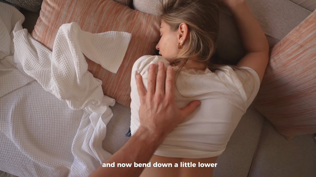 Conversations — 00:08, 17:25; dirty talk — 02:26, 03:43, 05:11, 08:22, 10:30, 12:07; blowjob — 03:54; swallowing — 04:47; doggystyle — 08:10; rubbing his dick — 12:24; missionary — 12:40; bouncing on his dick — 14:35; creampie + shivering orgasm — 16:29; creampie flows out — 17:06